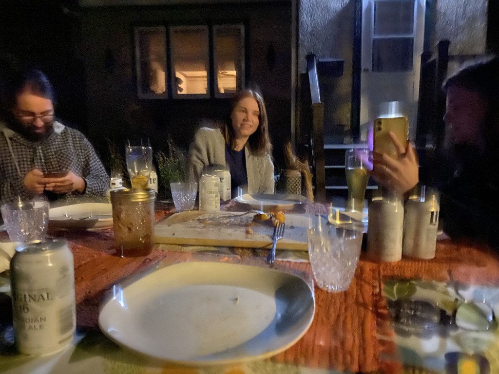 “I saw you at the grocery store. I’m Shawn.” Said a new face at the table. I felt like I was on holiday, just wandering around, arbitrarily meeting people, drinking, and eating food. “You did.” I introduced myself to Shawn, Haris, and Courtney. Kyla came out with my cocktail.