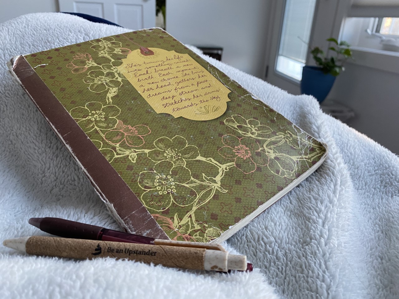 This old journal not only gave me blank pages to use up but I was also given a lesson. On an otherwise first blank page, with black ink I wrote the following quote: