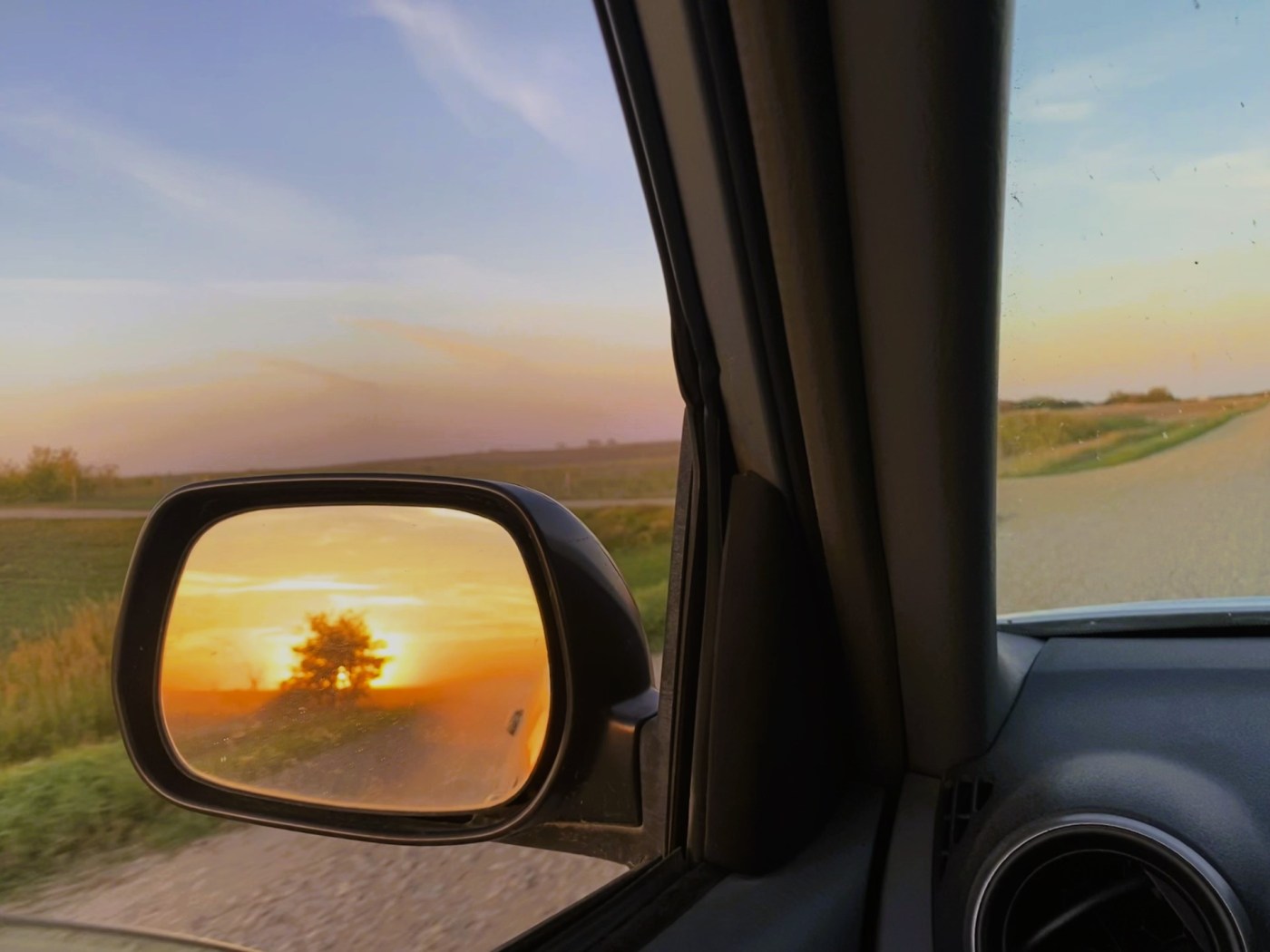 The highway was quiet. It was early evening and the sun was not yet setting. The fields were rolling like waves. I remember a few birds flying and landing on trees that edged the grain fields. I opened the back door of my car, which opened like a door, and took out a container of food from my cooler. A perfect place to tailgate.